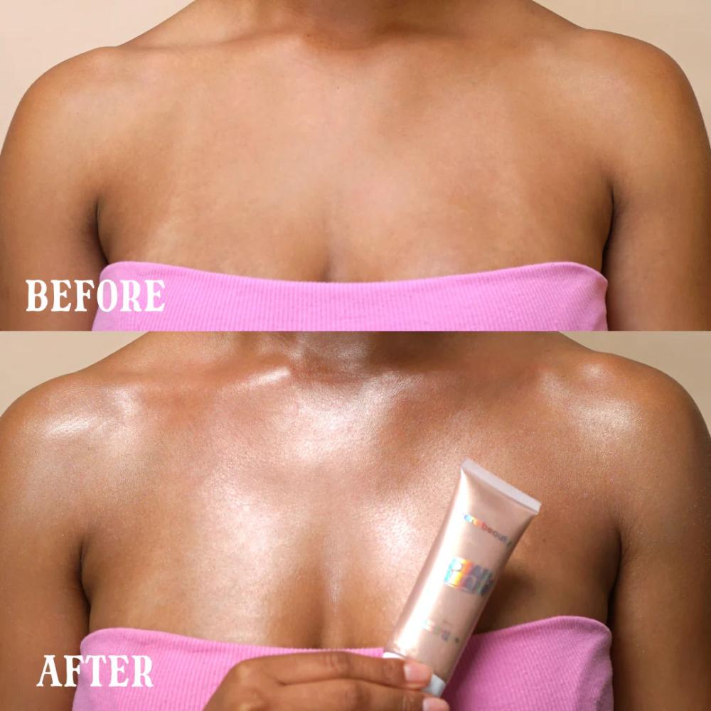 ضعيه على أي منطقة من جسمك ترغبين في إضفاء إشراقة مشرقة عليها. امزجيه بيديك أو بالفرشاة.